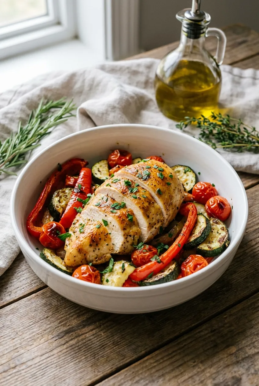 This recipe is all about efficiency without sacrificing flavor. We use one sheet pan to roast tender, juicy chicken with a perfectly crisp skin alongside colorful vegetables. It’s a complete meal that’s high in protein and packed with Mediterranean herbs, making it simple to stick to your health goals.
