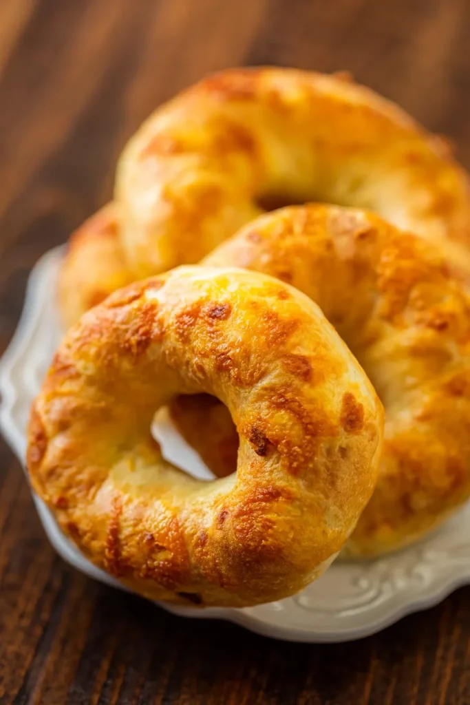 Make soft, savory bagels at home with this simple, no-boil recipe. Topped with a creamy blend of bacon, cheddar, and cream cheese baked right on top.