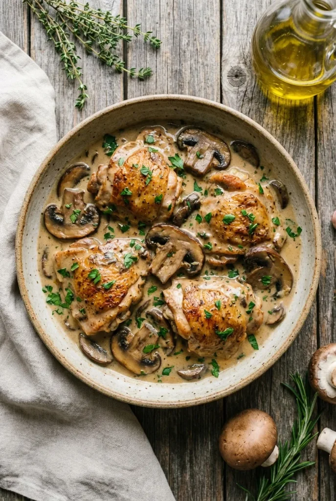 Tender, pan-seared chicken bathed in a rich and savory mushroom cream sauce. An elegant yet easy 35-minute skillet dinner perfect for any weeknight.