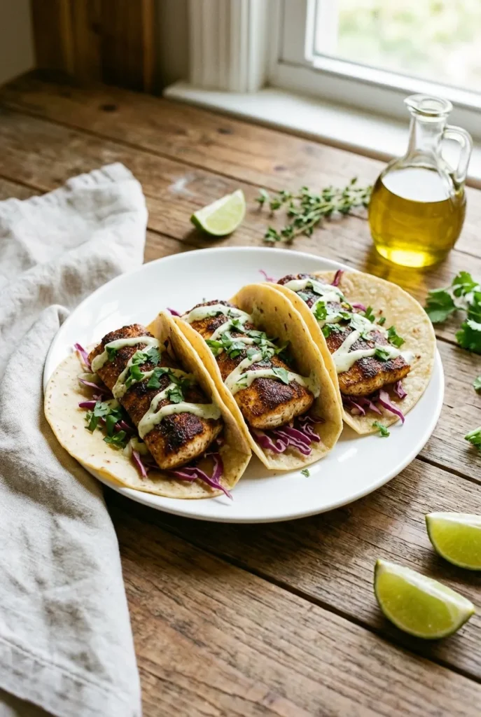 Ready in 30 minutes, these Blackened Mahi Mahi Tacos feature perfectly seared fish with a spicy crust, crisp cabbage, and a cool lime crema for an easy weeknight dinner.