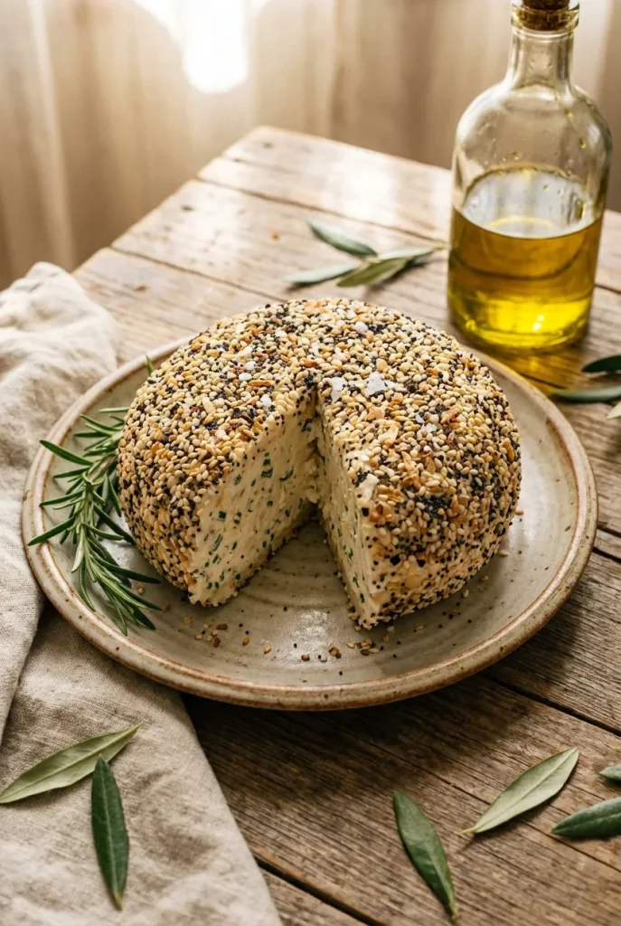 A classic party appetizer with a modern twist. This easy cheese ball combines creamy cheeses, zesty green onions, and the savory crunch of everything bagel seasoning.