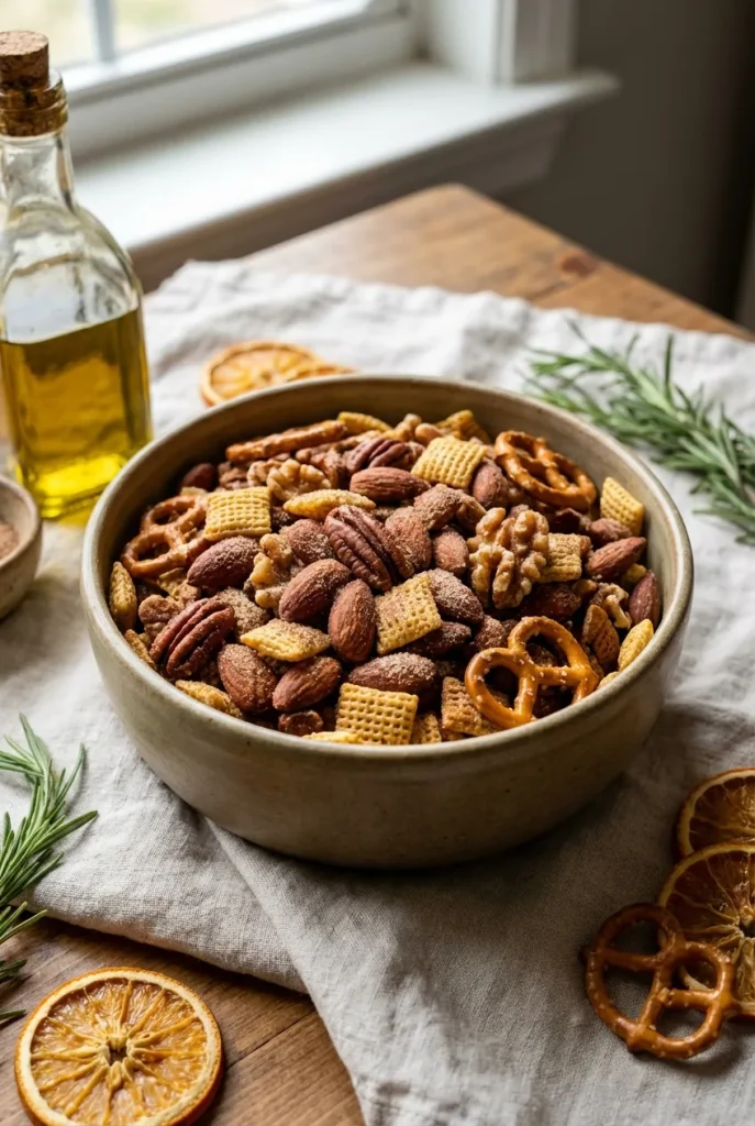 A crunchy, sweet, and savory homemade snack mix with cinnamon, honey, and rosemary. Ready in 30 minutes and perfect for fall snacking.
