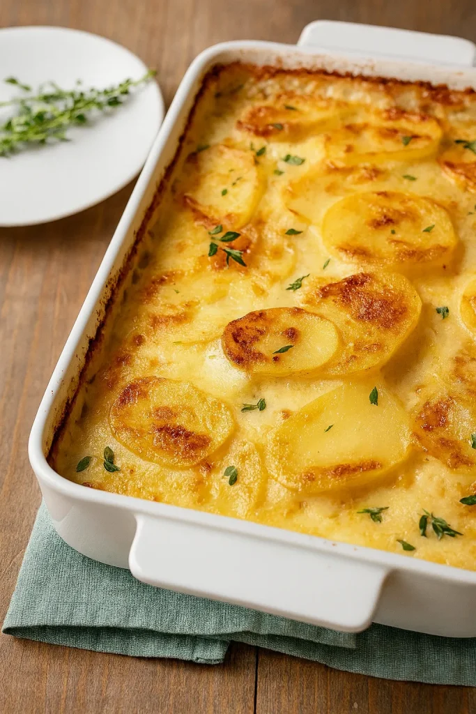 Tender, layered potatoes baked in a rich, velvety cheese sauce. This classic comfort food is perfect for holiday meals and family gatherings.