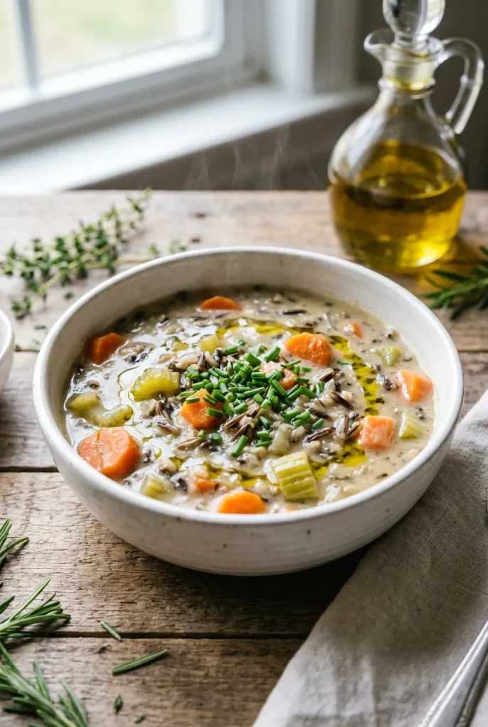 A cozy, creamy wild rice soup made in one pot. This vegetarian recipe is packed with hearty vegetables and tender wild rice, simmered in a rich, savory broth.