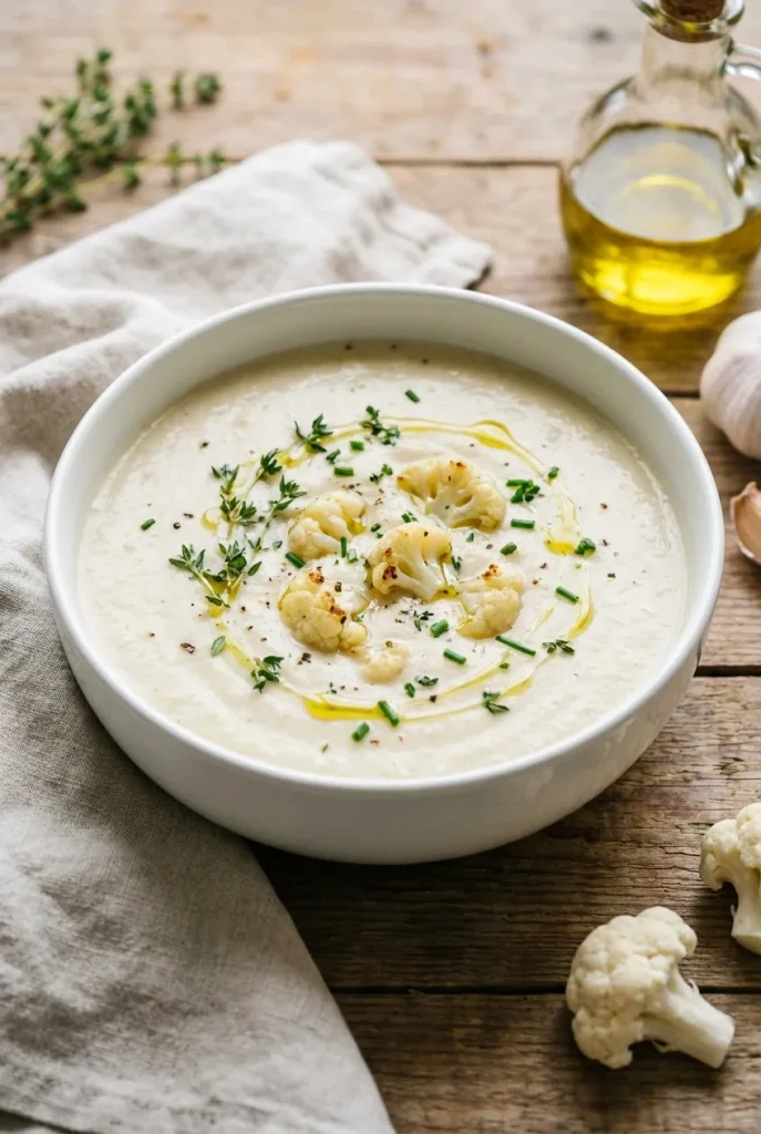 A velvety, roasted cauliflower soup that's both comforting and healthy. This easy, gluten-free recipe is perfect for a cozy weeknight meal.