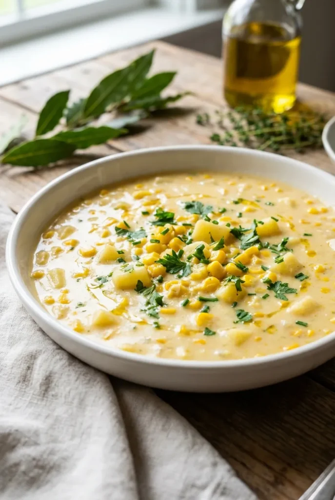 A velvety, comforting corn chowder made with sweet corn, tender potatoes, and a rich, creamy base. Ready in just 35 minutes, it's the perfect easy and satisfying weeknight meal.