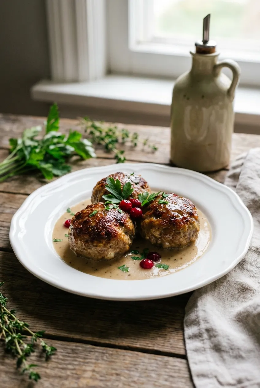 Transfer the meatballs and gravy to a serving dish. Garnish with a sprinkle of fresh parsley. Serve immediately, traditionally with mashed potatoes or egg noodles and a spoonful of lingonberry jam on the side.