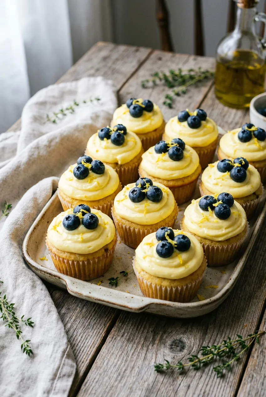 - Frost the completely cooled cupcakes and optionally garnish with lemon zest or fresh blueberries.