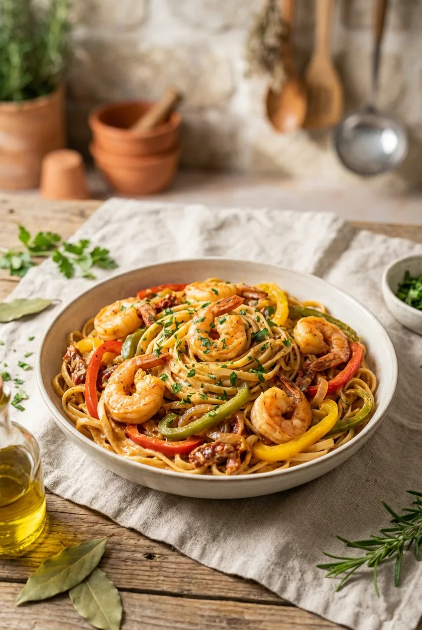 The key to a successful one-pot pasta is using the right pan and managing your liquid. I recommend a large, wide skillet with high sides. This shape provides enough surface area for the vegetables and shrimp to sauté without steaming, which develops better flavor. It also allows the pasta to cook in an even layer, ensuring it absorbs the broth and cream uniformly. As the pasta cooks, the starches it releases will naturally thicken the broth into a sauce. If your sauce seems too thick, you can add a splash more broth; if it’s too thin, let it simmer for an extra minute or two before adding the shrimp back in.