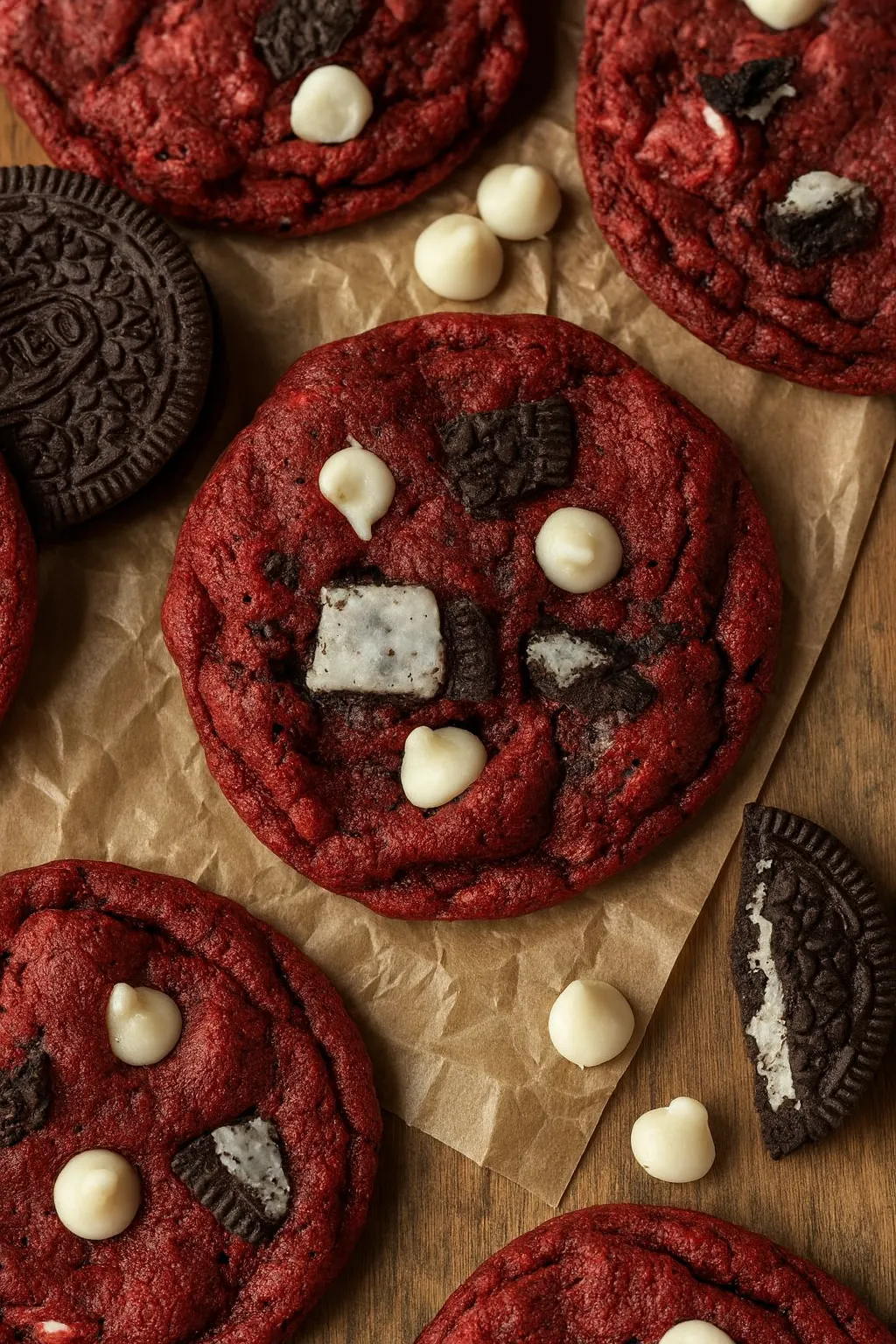 These Red Velvet Oreo Cookies are soft, chewy, and packed with white chocolate chips and crushed Oreos. The dough comes together quickly and yields reliably tender cookies with classic red velvet flavor.