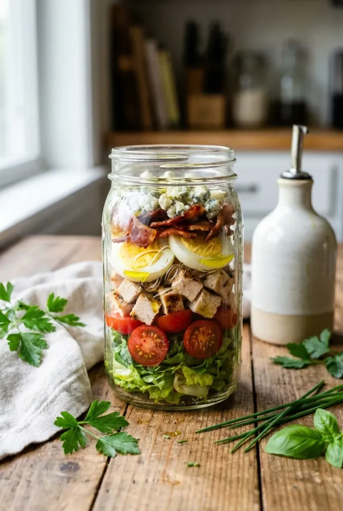 This Mason Jar Cobb Salad is your solution for healthy, satisfying meal prep. Layered with grilled chicken, crisp bacon, avocado, and blue cheese, it’s a delicious no-cook lunch ready when…