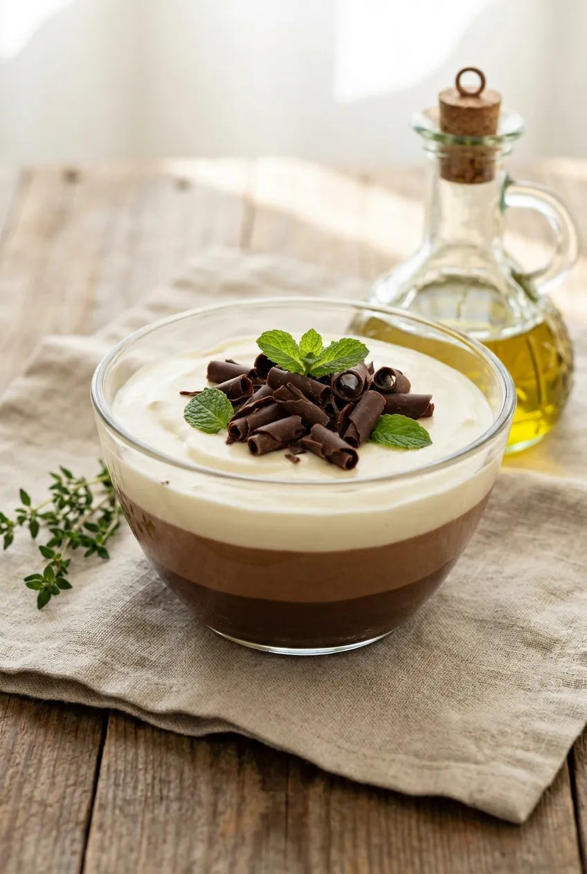 Just before serving, top each mousse with chocolate shavings and a fresh mint leaf, if desired. Serve chilled. The distinct layers look best when served in clear glass bowls or cups.